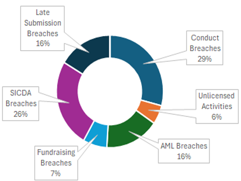 Breakdown of breaches of the securities law