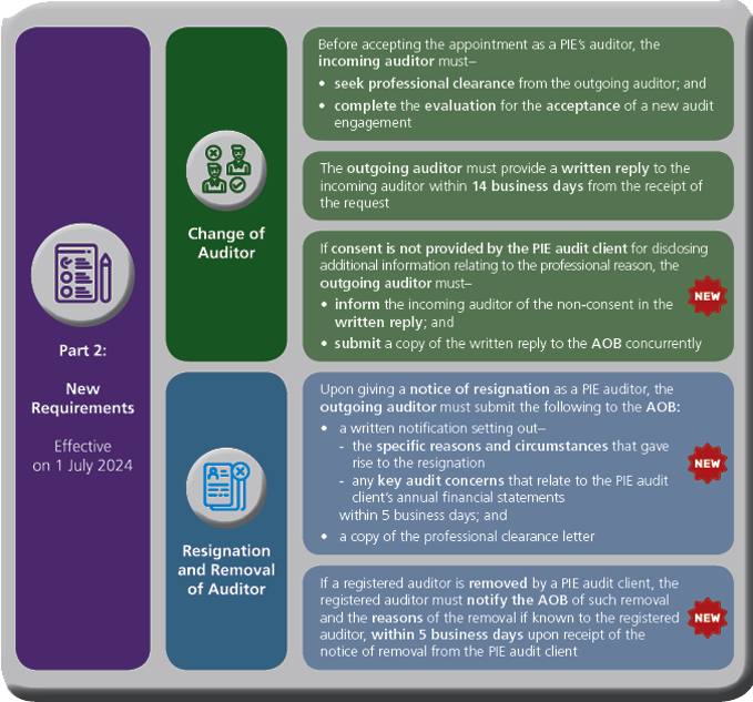 Submission of a written notification by the auditor on reasons relating to its resignation and removal as an auditor to the AOB.