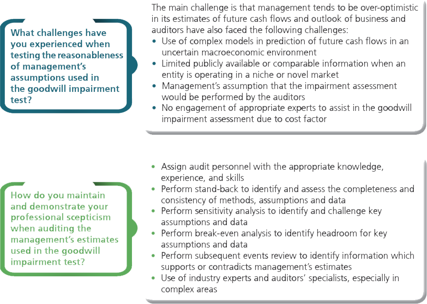 During the AOB’s Annual Conversation with Major Audit Firms, the AOB provided brief backgrounds on IOSCO’s Consultation on Goodwill and sought views on questions related to auditors. The consolidated auditors’ responses to IOSCO’s Consultation on Goodwill – Questions for Independent Auditors are summarised in Figure 2.