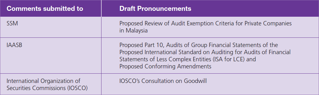 During the year, the AOB has also shared comments on various draft pronouncements as shown in Table 1.