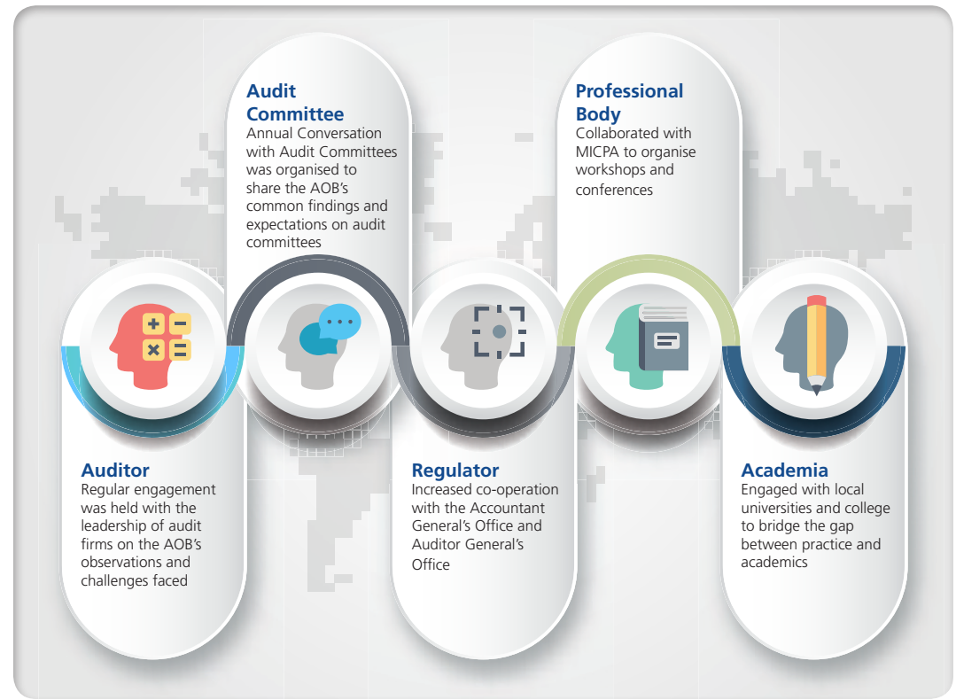 The AOB places emphasis on regular and targeted engagements with key stakeholders, which includes auditors, financial