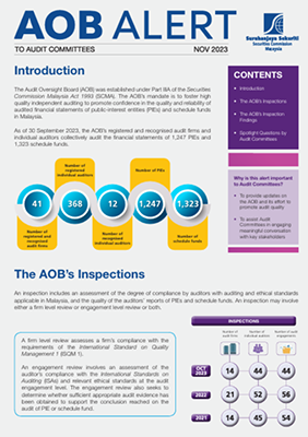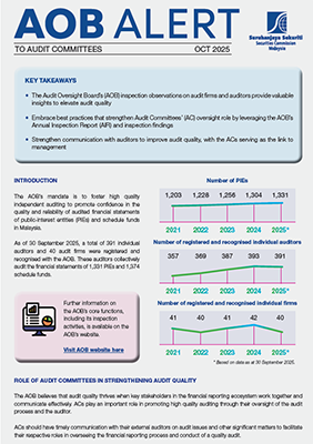 AOB Alert aims to provide clear and concise information on AOB’s oversight activities and matters relating to audit quality.