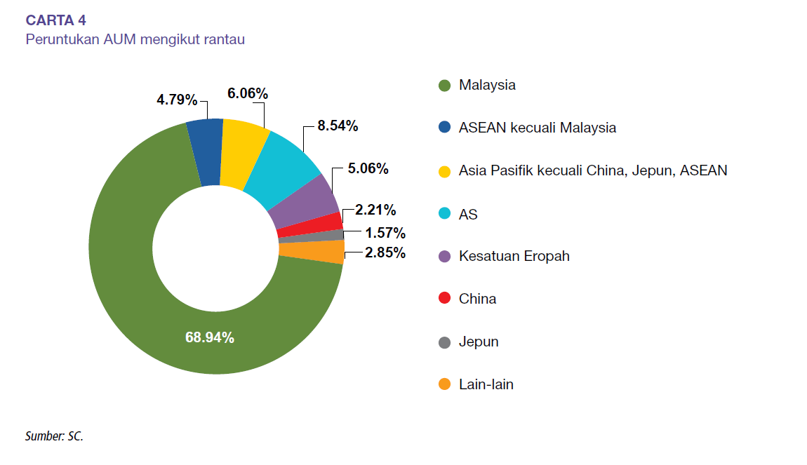 Peruntukan AUM asing tertumpu di AS, Asia Pasifik kecuali China, Jepun, dan ASEAN dan Kesatuan Eropah (Carta 4).