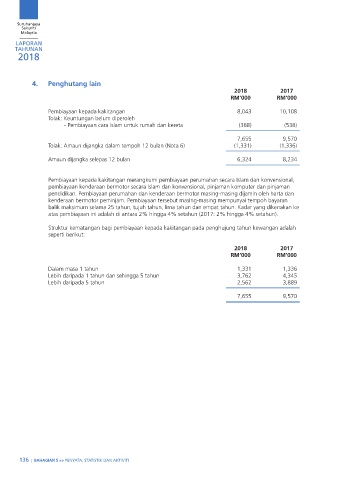 atas pembiayaan ini adalah di antara 2% hingga 4% setahun (2017: 2% hingga 4% setahun).