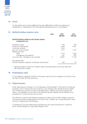 Untuk tujuan penyata kewangan ini, pihak dianggap berkaitan dengan SC sekiranya SC mempunyai