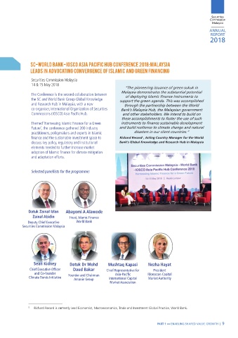 Promoting the sustainable finance agenda in 2018 Sc-WOrLD BaNk- IOScO aSIa PacIFIc HUB cONFErENcE 2018: maLaySIa