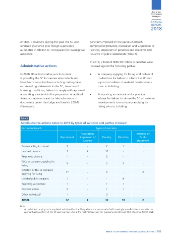 entities. Conversely, during the year, the SC also Sanctions imposed on the parties in breach