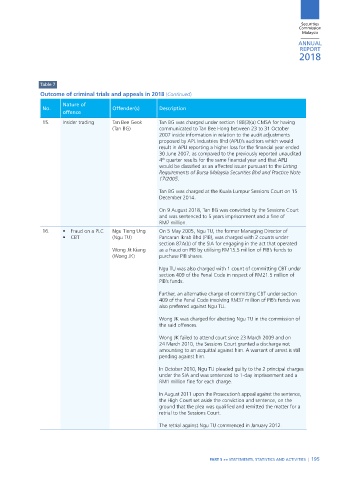 outcome of criminal trials and appeals in 2018 (Continued)