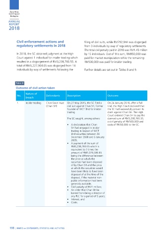 1. Insider trading Chan Soon Huat On 27 May 2015, the SC filed a On 24 January 2018, after a full