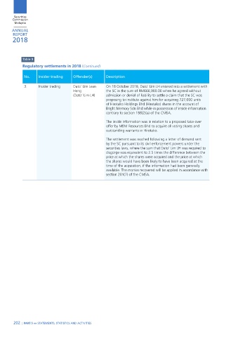 3. Insider trading Dato’ Lim Lean On 18 October 2018, Dato’ Lim LH entered into a settlement with