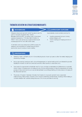 Malaysia’s structured warrants market has grown over the Issue industry circulars on best practices for: