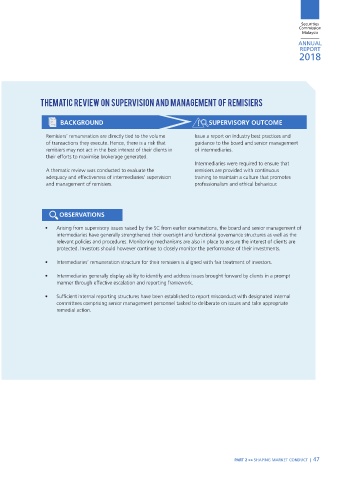 Remisiers’ remuneration are directly tied to the volume Issue a report on industry best practices and