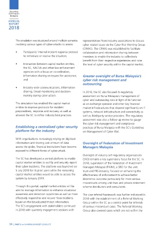 sharing, threat monitoring and decision- In 2018, the SC also focused its regulatory