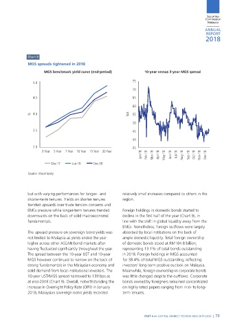 The spread between the 10-year UST and 10-year in 2018. Foreign holdings in MGS accounted