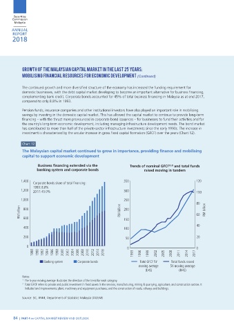 complementing bank credit. Corporate bonds accounted for 45% of total business financing in Malaysia as at end 2017,