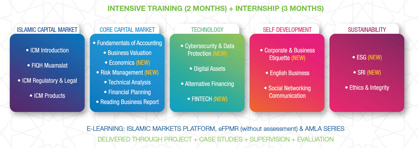 The ICMTD programme industry focused modules are conducted through a wide variety of methodologies which include virtual classrooms, hands-on workshop, business simulation projects, case study discussions, presentations and e-learning. The programme also comprises internship opportunities for participants to kick-start their careers in ICM, thus simultaneously channelling fresh talents for future developmental needs of the Malaysian capital market.