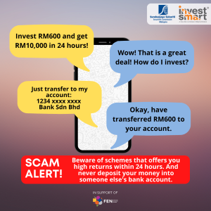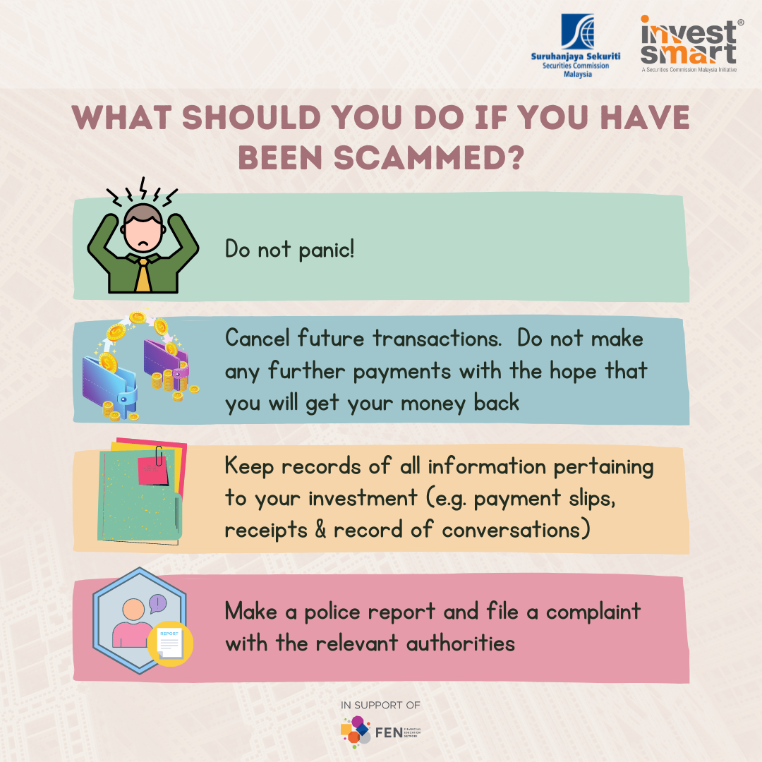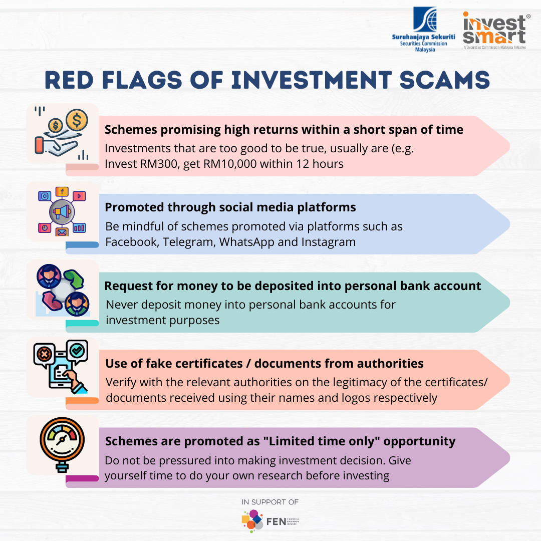 Always exercise extreme caution when being offered an investment scheme. Take precautionary steps to protect yourself from being a victim of scams.