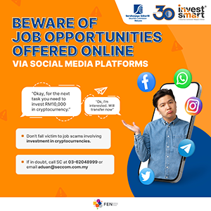 Scammers are becoming increasingly sophisticated with their tactics and are constantly looking for new ways to prey unsuspecting and vulnerable individuals. They are using various online and offline mediums to reach out to the members of the public and are capitalising on new technology to create schemes that are attractive and “irresistible”. Many schemes come disguised as different types of business opportunities such as investment schemes for various types of products or services, designed to swindle your hard-earned money.