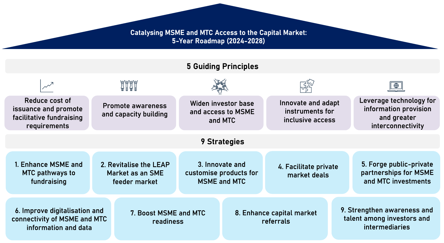 The Catalysing MSME and MTC Access to the Capital Market: 5-Year Roadmap (2024-2028) (“MSME and MTC Roadmap”) was developed by Securities Commission Malaysia (“SC”) to increase the accessibility of market-based financing for the micro, small and medium enterprises (“MSMEs”) and as well as mid-tier companies (“MTCs”) segments.