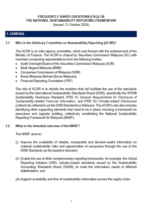 National Sustainability Reporting Framework