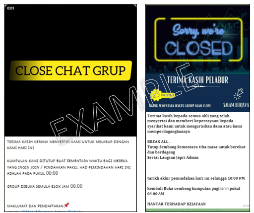 Scammer selalunya menggunakan taktik tekanan atau FOMO (Fear of Missing Out) untuk menyakinkan mangsa. Setiap peluang pelaburan mestilah diberikan pertimbangan yang sewajarnya dengan mengambil kira tahap risiko dan kemampuan pelabur.