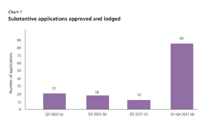 During Q3 2022, the SC considered 18 submissions, which represented a 14% decrease compared with 21 submissions considered in the corresponding quarter in Q3 2021.