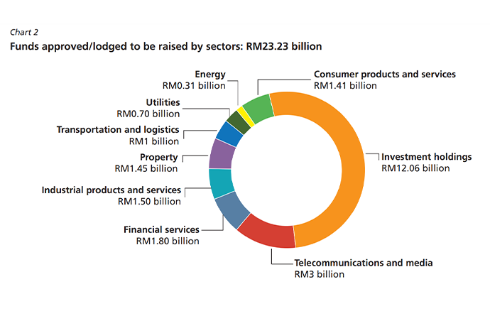 • Total funds to be raised from the proposals approved by/lodged with the SC amounted to RM23.23 billion, out of which RM21.82 billion or 93.9% would be from corporate bonds and sukuk.