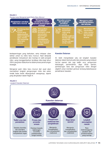 berkepentingan yang berkaitan; serta imbasan alam sekitar untuk isu risiko baru muncul. Hasil daripada pendekatan menyeluruh dan mantap ini ialah prospek risiko yang menggambarkan landskap risiko bagi tahun 2024, yang akan disalurkan ke dalam proses perancangan strategik.