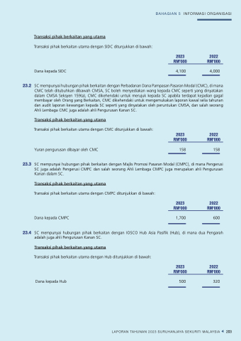 23.4 SC mempunyai hubungan pihak berkaitan dengan IOSCO Hub Asia Pasifik (Hub), di mana dua Pengarah adalah juga ahli Pengurusan Kanan SC.