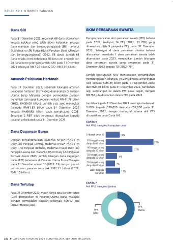 Jumlah ahli pada 31 Disember 2023 meningkat sebanyak 3.90% kepada 579,000 daripada 557,000 pada 31 Disember 2022, dengan demografi utama ahli PRS ditunjukkan pada Carta 6-8.