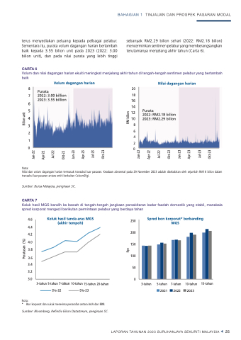 sebanyak RM2.29 bilion sehari (2022: RM2.18 bilion) mencerminkan sentimen pelabur yang memberangsangkan terutamanya menjelang akhir tahun (Carta 6).