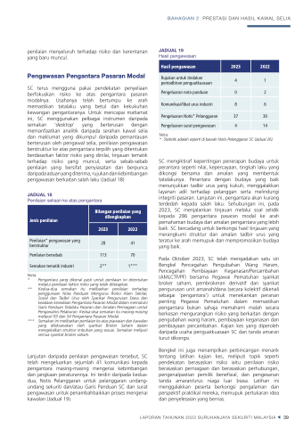 Pengawasan Pengantara Pasaran Modal Jenis penilaian Bilangan penilaian yang dilengkapkan 2023 2022 Hasil pengawasan 2023 2022