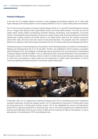 In line with the SC’s strategic objective to become a more engaging and facilitative regulator, the SC often holds regular dialogues with industry players to ensure ongoing feedback on the SC’s capital market policies and initiatives.