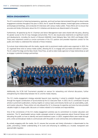 To nurture closer relationships with the media, regular visits to prominent media outlets were organised. In 2023, the SC organised three visits to various media outlets, allowing the SC to engage with journalists and editors in person. The SC visited The Edge and the New Straits Times Press, as well as state media agencies to forge relationships as well as engage in potential strategic partnerships.