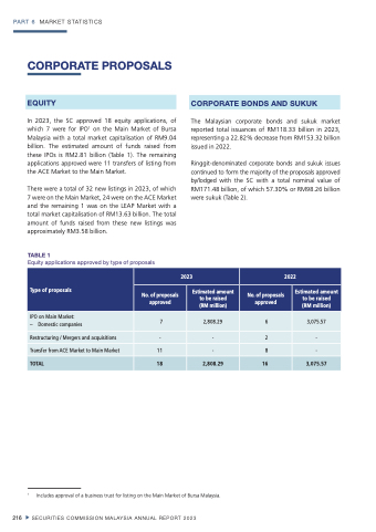 Ringgit-denominated corporate bonds and sukuk issues continued to form the majority of the proposals approved by/lodged with the SC with a total nominal value of RM171.48 billion, of which 57.30% or RM98.26 billion were sukuk (Table 2).