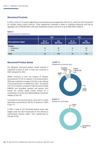 In 2023, a total of 12 issuers lodged 20 new structured product programmes with the SC under the LOLA Framework for unlisted capital market products. These programmes comprised a variety of underlying references and had an aggregate size of RM100 billion with each programme having a size limit of up to RM5 billion (Table 4).