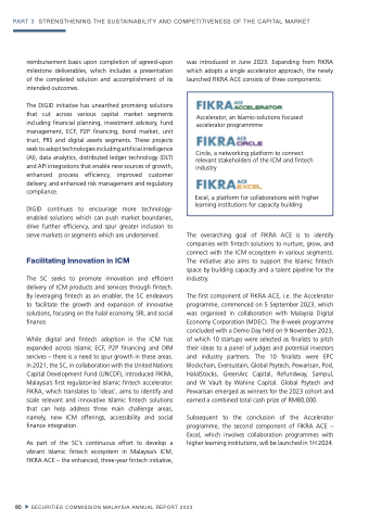 While digital and fintech adoption in the ICM has expanded across Islamic ECF, P2P financing and DIM sercives – there is a need to spur growth in these areas. In 2021, the SC, in collaboration with the United Nations Capital Development Fund (UNCDF), introduced FIKRA, Malaysia’s first regulator-led Islamic fintech accelerator. FIKRA, which translates to ‘ideas’, aims to identify and scale relevant and innovative Islamic fintech solutions that can help address three main challenge areas, namely, new ICM offerings, accessibility and social finance integration.