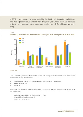 Chart 1 depicts the percentage of inspected audit firms with findings from 2016 to 2018 where improvements