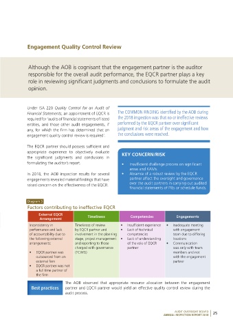 In 2018, the AOB inspection results for several • Absence of a robust review by the EQCR