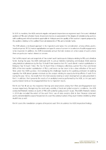 to be inspected. In addition, the AOB incorporates annual thematic reviews on certain areas of audits where
