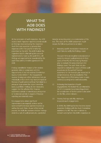 findings are expected to be remediated by the revise the relevant audit procedures in their In yet another first step for the AOB,