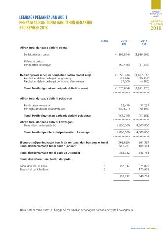 PENYATA PERUBAHAN DALAM EKUITI BAGI TAHUN BERAKHIR PENYATA ALIRAN TUNAI BAGI TAHUN BERAKHIR TAHUNAN