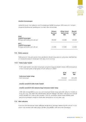 Jadual di bawah meringkaskan profil kematangan liabiliti kewangan AOB pada akhir tempoh