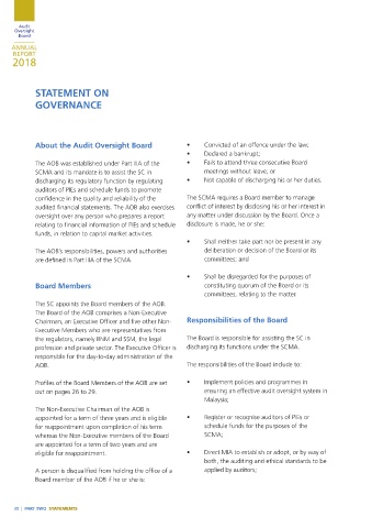 audited financial statements. The AOB also exercises conflict of interest by disclosing his or her interest in