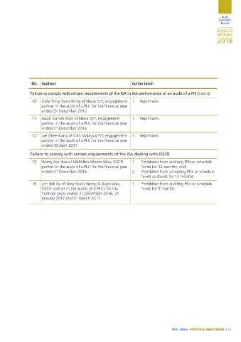 13. Wong Joo Hua of McMillan Woods Mea, EQCR 1. Prohibited from auditing PIEs or schedule