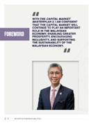 WITH THE CAPITAL MARKET MASTERPLAN 3, I AM CONFIDENT THAT THE CAPITAL MARKET WILL CONTINUE TO PLAY AN IMPORTANT ROLE IN THE MALAYSIAN ECONOMY, ENABLING GREATER PROSPERITY, ENCOURAGING INCLUSIVITY, AND SUPPORTING THE SUSTAINABILITY OF THE MALAYSIAN ECONOMY.
